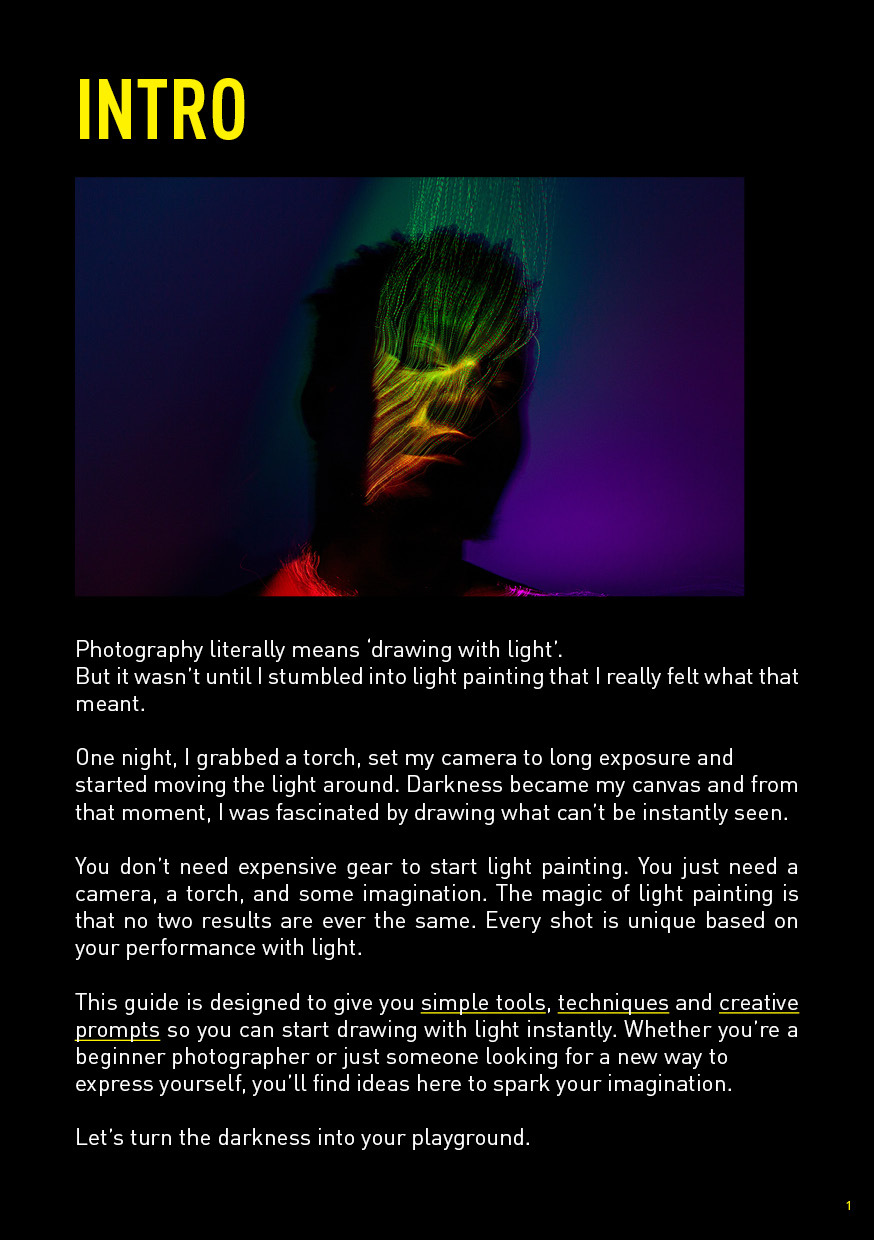 You'll get a creative quick-start ebook to inspire your light painting photography.